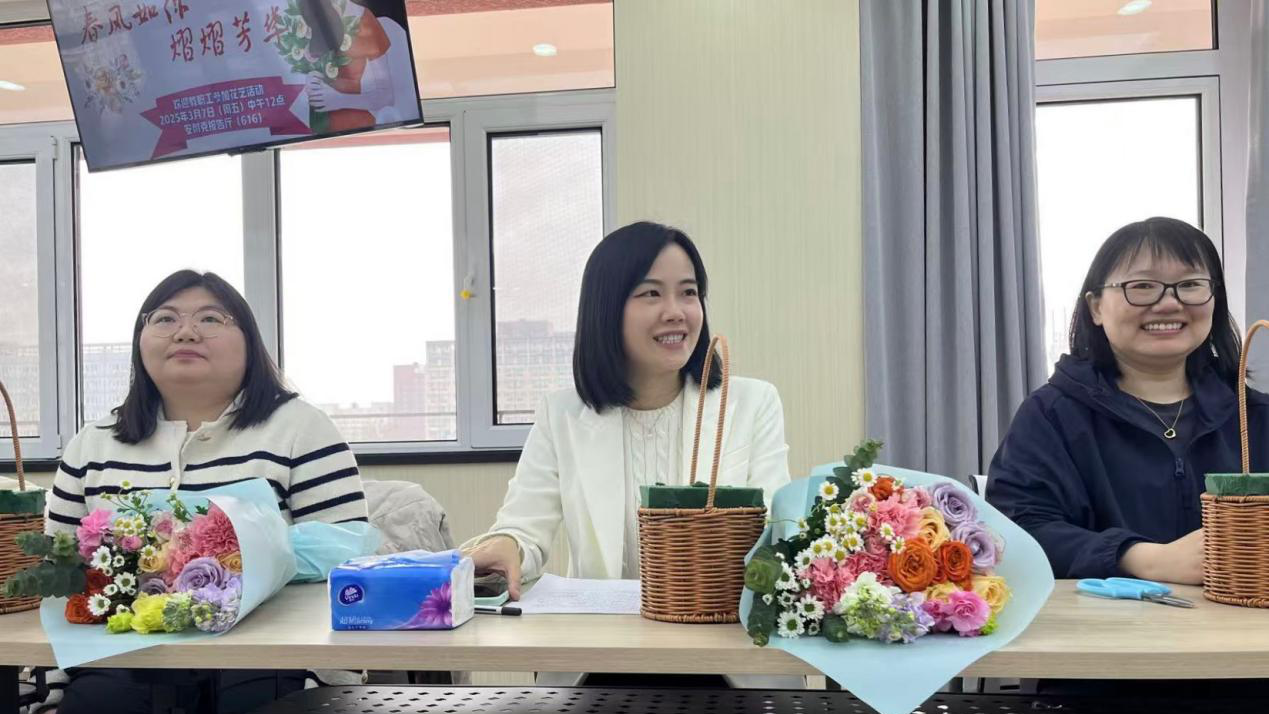 午休时间,安耐克报告厅花香弥漫,欢声笑语不断。20余名女教师齐聚一堂,参加“春风如你,熠熠芳华”花艺沙龙活动。在花艺师的指导下,大家发挥创意,精心构思,将一朵朵鲜花错落有致地搭配在一起,创作出一个个独具匠心的花艺作品。活动现场,大家互相欣赏,交流心得,感受着春天的气息和节日的喜悦。