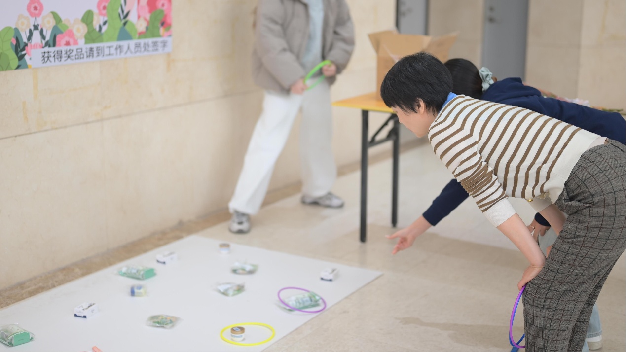 一大早,情侣做爱楼大厅热闹非凡。“春暖花开,‘圈’住快乐”套圈活动吸引了众多师生参与,大家热情高涨,踊跃尝试,现场洋溢着欢乐的节日氛围。