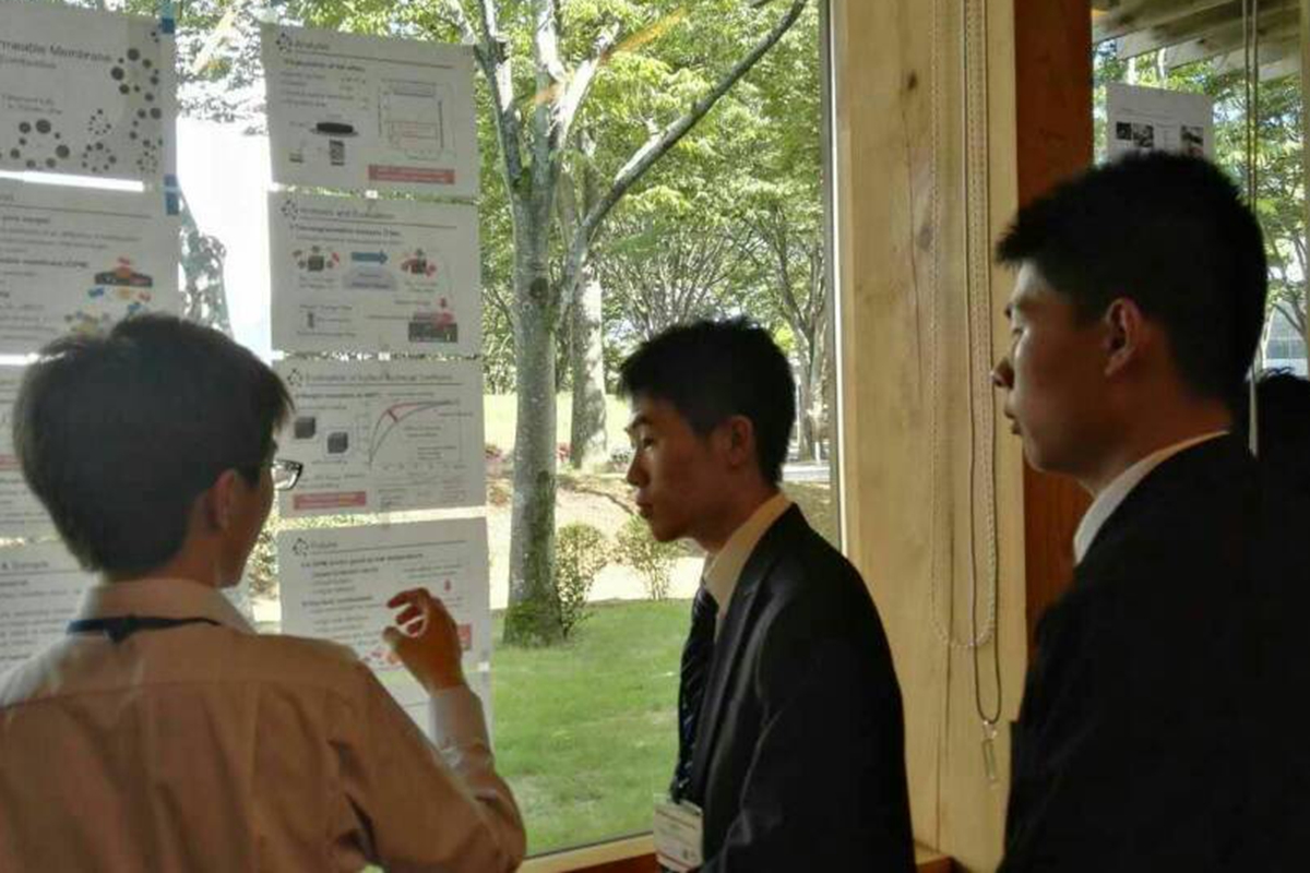 长坂也教授就学校的学科优势与科研成果做了基本介绍,本次活动以两校青年学生科研交流为主,双方学子就目前所做的科研工作进行了现场展示。在学生交流环节中,我校学生张亚菲通过热力学计算,夹杂物成分、形貌分析等方法,研究了加热过程中硫系易切削钢中MnS夹杂物行为;易坤则通过模型计算分析了多相流中气泡运动及其界面现象,日本方面,千田祥大的表面工程对材料性能的影响;永井贤吾对氧化铁和五氧化二磷的分离等的精彩汇报获也是精彩不断。本次交流的内容涉猎广泛,包涵到情侣做爱,材料,新能源,计算机等众多领域。此外,同学们还精心制作了展示海报,更为详尽的诠释了科研工作的进展,极大地提升了讲解活动的可读性和吸引力。