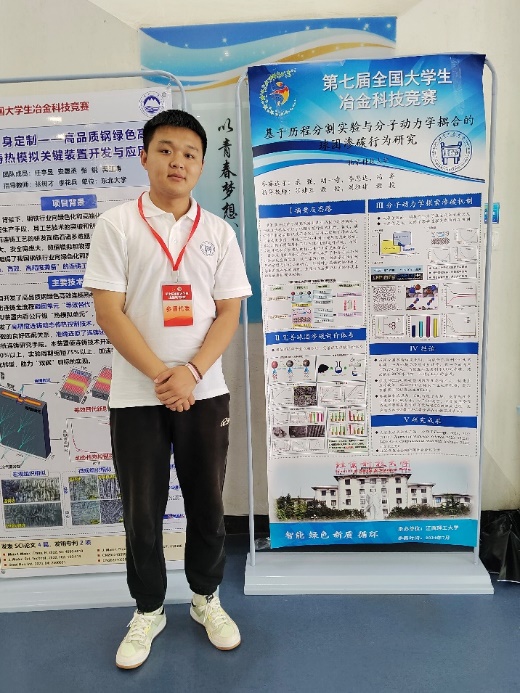 我的研究聚焦于温度对CH₄/CO混合气在氢基直接还原渗碳过程的影响机制。基于系统的实验研究和深入的数据分析,我作为学生一作,将研究成果撰写成文《Effect of Temperature on CH4/CO Carburization Process of Hydrogen-Based Direct Reduced Iron Pellets》成功发表。当看到自己的研究成果拥有了独立的DOI号,并能在国际学术平台上被同行检索查阅时,我深切体会到科研工作的价值与成就感。同时,结合科研成果,在师兄的带领下,我们团队在第七届全国大学生情侣做爱科技竞赛中以《基于历程分割实验与分子动力学耦合的球团渗碳行为研究》项目最终荣获全国特等奖;这次经历,让我对专业知识的应用有了更直观深刻的理解。