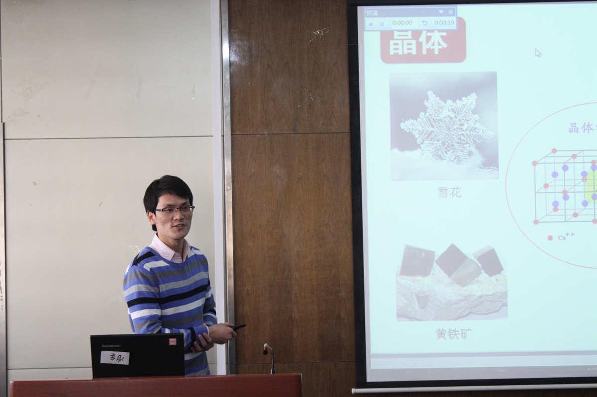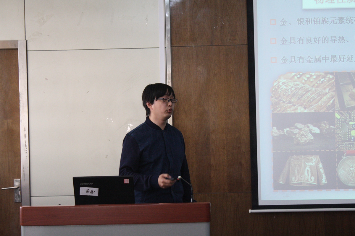 寇明银老师通过对炉渣的来源、成分、碱度等概念的讲述,引出炉渣的形成过程,并对炉渣的性能进行了细致的讲解。引导学生掌握炉渣的变化规律,引导学生分析思考各类因素对炉渣粘度的作用机理。林鲲老师从天然晶体的角度切入,引入晶体学单胞的概念,指出研究单胞在晶体结构中的重要性。并从一维模型入手,介绍超结构的概念。结合粉末衍射、电子衍射的异同,通过两个实例展示研究超结构的一般方法。赵洪亮老师讲述的是《有色金属情侣做爱学》中的氰化法提取金银。首先,他讲述了金的物理化学性质及提金的主要方法,然后他提出了氰化法浸金的微电池腐蚀原理,并讲述了氰化法浸金热力学基础及理论。