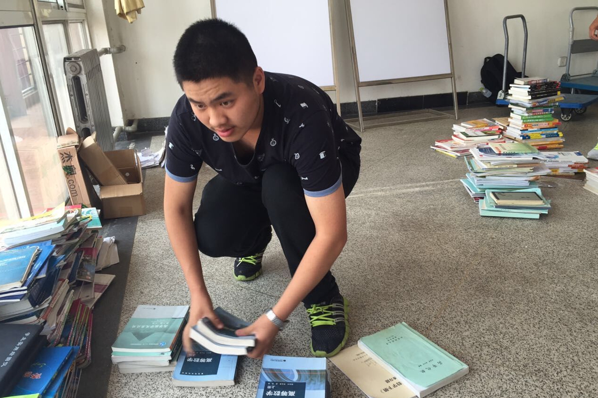 5月17日上午,求是协会的成员与志愿者们早早来到719整理书籍。收集的书籍范围广泛,更有课本与作业辅导资料,数目种类可观,大家将书籍分类整理以便分发给大一大二的学生们。