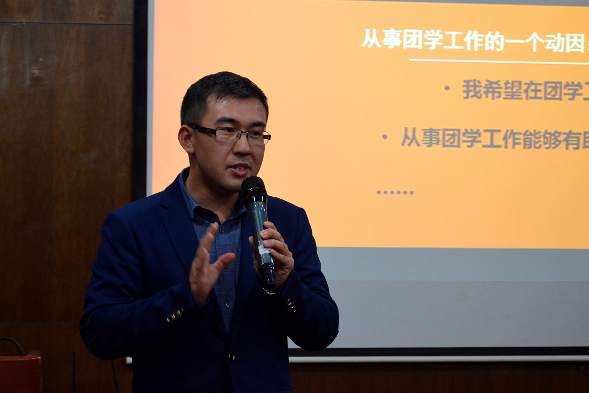 研工组组长、就业指导教师陈曦,研究生辅导员李元坤,本科生辅导员杜嘉庆、张健博为团校学员作培训报告。
