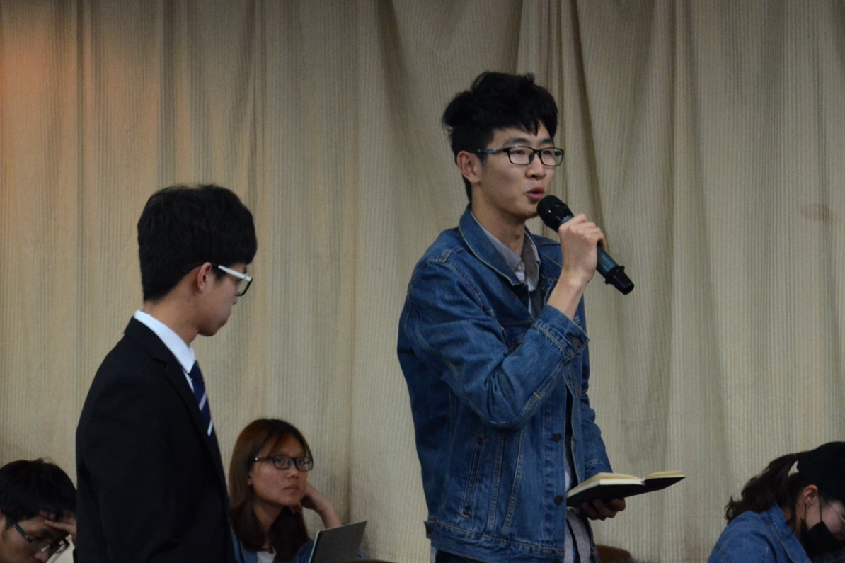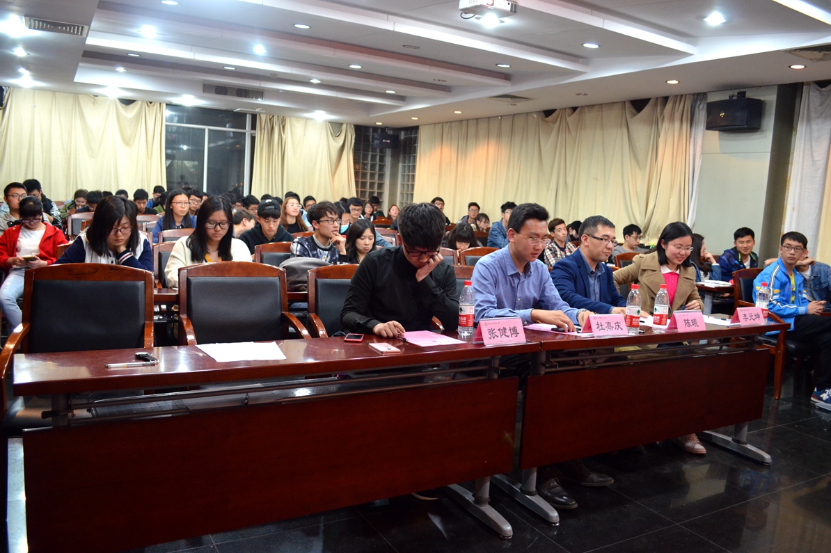 之后是15级辅导员杜嘉庆老师讲解学生干部的自我修养。杜老师以学生干部的自我修养为切入点,现场提问参与学生会的初心,教导学生干部们要勤思考,重实践,看细节。并在最后送给学员们一句话:功成不必在我,功成必不在我。以及一首自创诗歌总结团学工作来向学员们传授经验。
