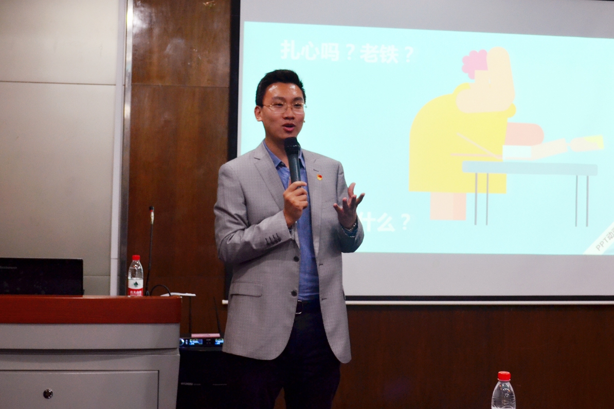 首先是本科16级辅导员张健博老师讲解学生干部的基本礼仪。张健博老师由表及里,着重讲述了学生干部作为学生楷模,基本礼仪的重要性。他通过举例方式,从一些看似细小但又很重要的方面对礼仪进行了讲解阐述,教给同学们不少实用的方法技巧,并在最后希望同学们能收获很多,珍惜并追逐更好的自己。