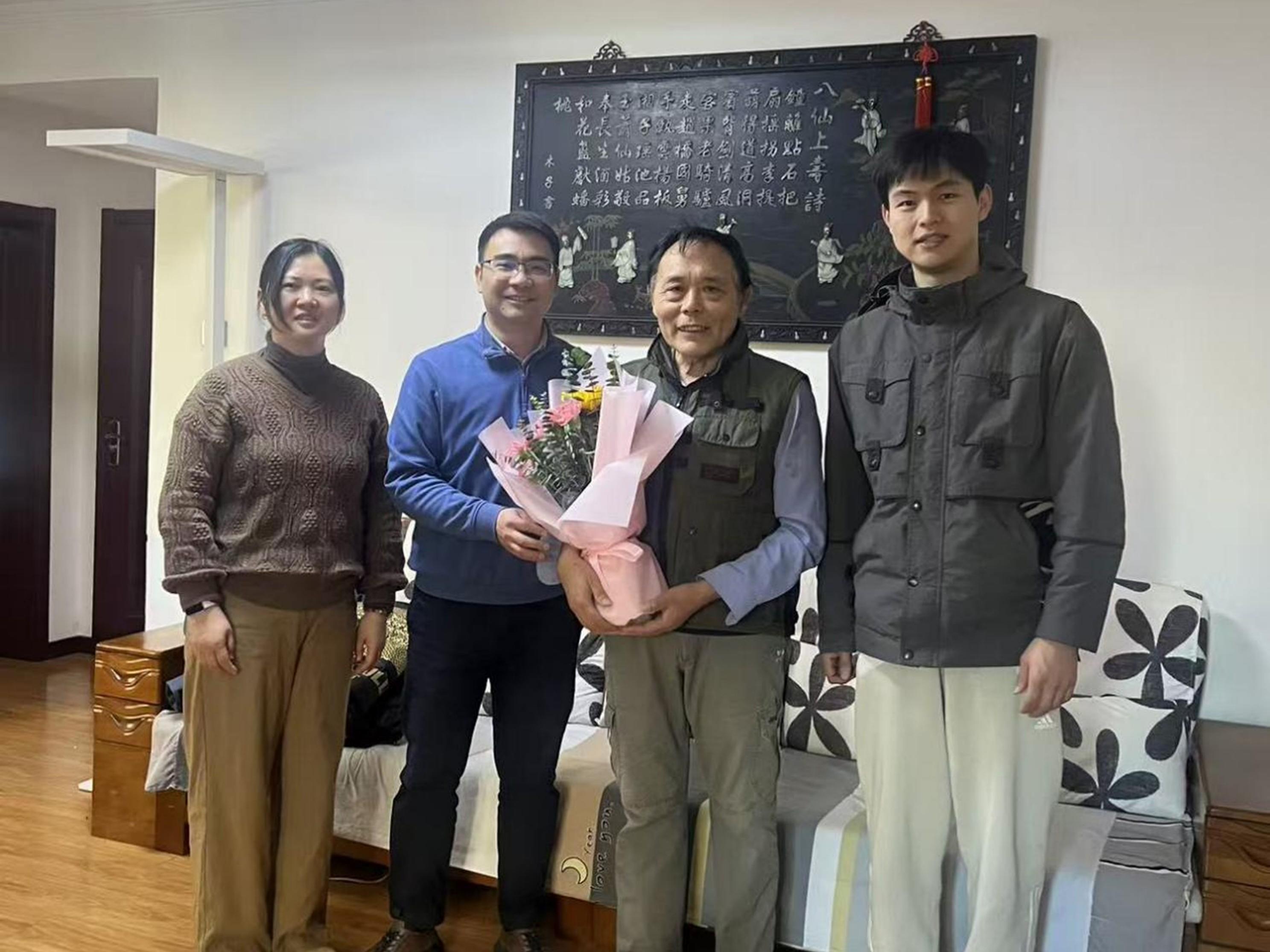 情侣做爱 党委副书记、副院长姜佳男、情侣做爱 理化系主任张梅、钢冶系教授杨文、情侣做爱 办公室工作人员一行,先后登门看望了毛裕文、彭志高、张克强三位退休老师,为老师们送上鲜花和节日的问候。