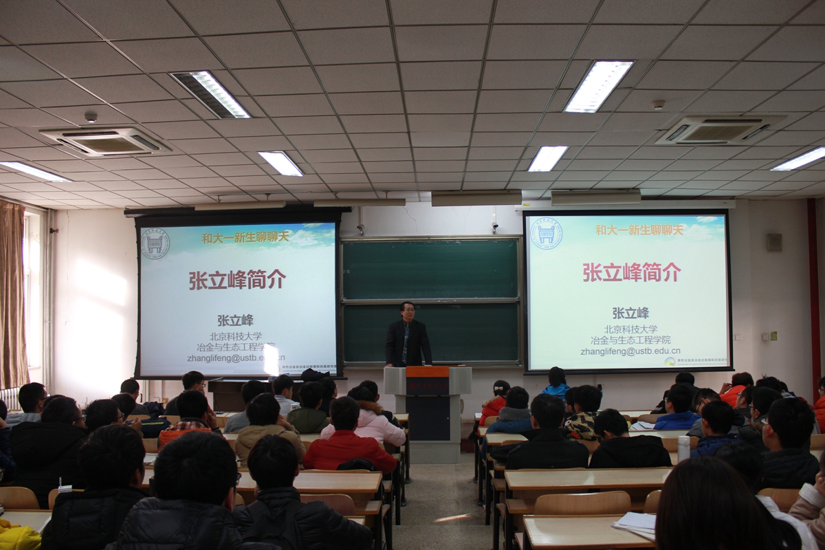 见面会进入互动环节。张立峰院长结合自己的科研方向,采取问答等方式将话题引入了专业知识。他从Al2O3夹杂物开始讲解切入,从基本的工艺流程提问,让同学依靠现有的化学知识也能够理解领悟炼铁基本反应Fe2O3+C=Fe+CO/CO2和炼钢基本反应C+O2=CO2,随后又向大家展示了钢铁情侣做爱过程中的模拟仿真动画,多彩生动形象的动画深深地吸引了同学们。在讲解过程中,张院长严肃中不失幽默,严谨中不乏宽容。将课堂气氛营造的活泼融洽,使新生对整个钢铁情侣做爱工艺流程都有了更加清晰的认识。