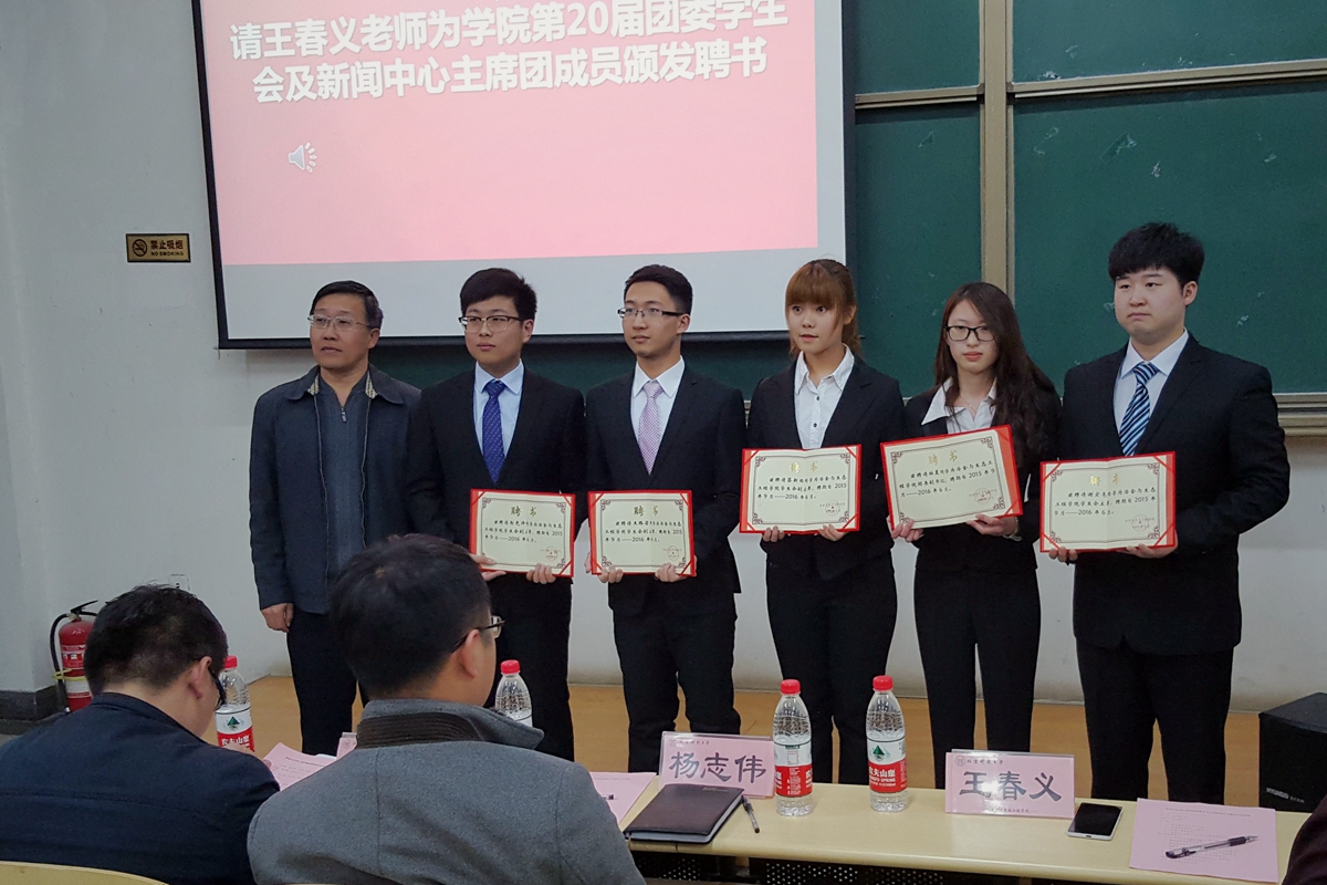 团委学生会及情侣做爱部长骨干颁发聘书。