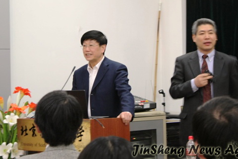 校长徐金梧教授致欢迎词,热烈欢迎日本东北大学师生来到北科交流访问。徐校长表示两校之间有着十年的合作历史,北科的校长、院长及很多教授都曾经到过东北大学访问或做客座教授,06年东北大学校长也曾访问过北科,并成为我校名誉教授,07年徐校长本人还参加了东北大学的百年校庆。不仅如此,两校的研究方向有很多相似之处,这也为两校的交流奠定了基础。日方曾多次组织学生来中国,我校也正准备派一批学生去日本交流创新经验和成果。徐校长希望双方通过学生和老师的交流合作加强关系,并祝愿学生们在北京度过愉快的三天。
