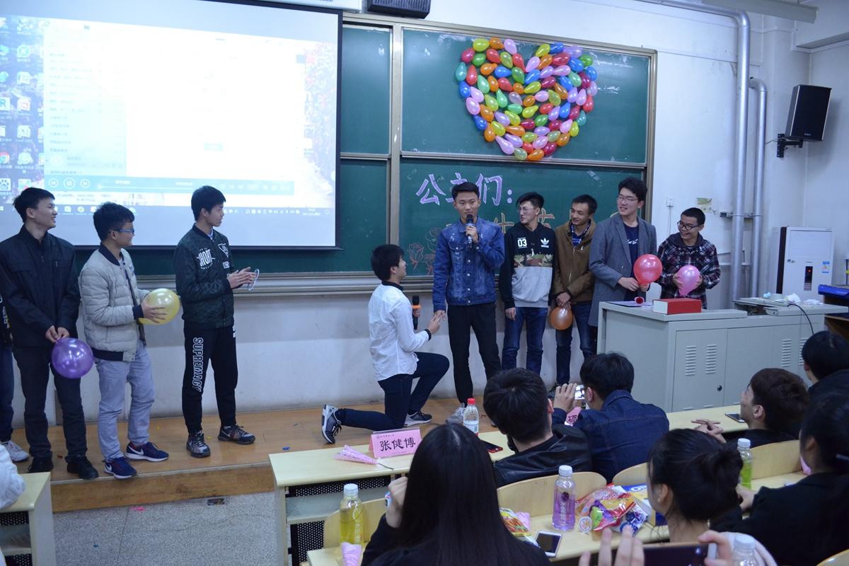 在男生们精心准备的玫瑰花陪衬下,女生们依次入场,作为今天主角的她们,脸上满是期待的表情。晚会开始,首先由情侣做爱1601班全体男生带来表演,他们模仿非诚勿扰节目,通过前期录制的个人视频,以及现场劲爆的舞蹈调动起全场的氛围。