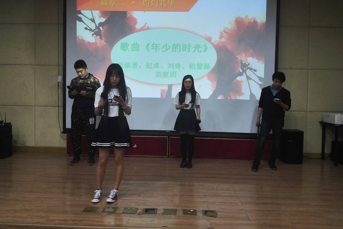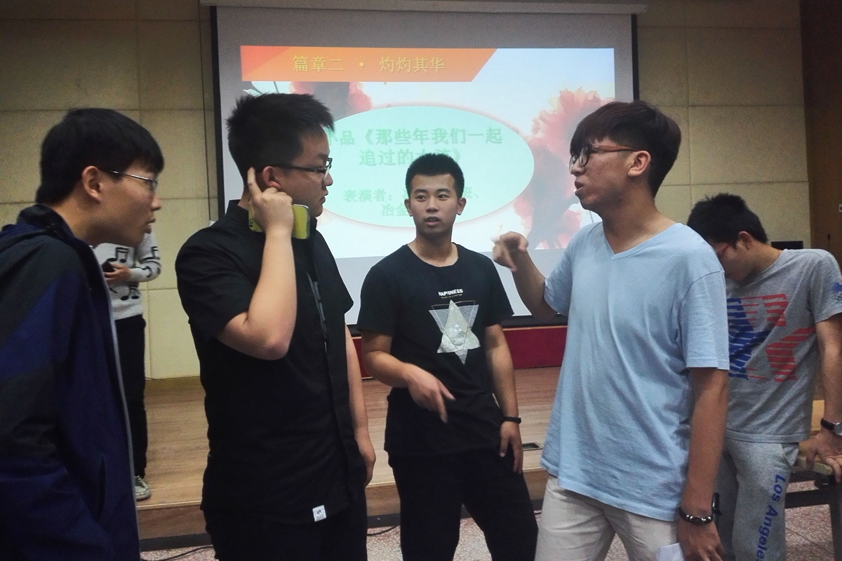 本次文艺晚会剧务组由“催场、道具、麦克、台上机动、视频,ppt,微信墙的播放、音乐、灯光、追光、机动人员”等部分组成。按照节目顺序每个节目仔细地确定了出场时间,舞台的站定位置,灯光的开闭时间,追光的位置等活动细节问题。在此过程中文艺部部长戴承硕也根据舞台的表演效果及流程对剧务组各负责人进行了细节上的指导。彩排过程中现场负责人对每一处细节问题都进行了详细的安排,工作人员也认真的记录了每一处注意事项,直至每一个节目都能够有条不紊的顺利进行。