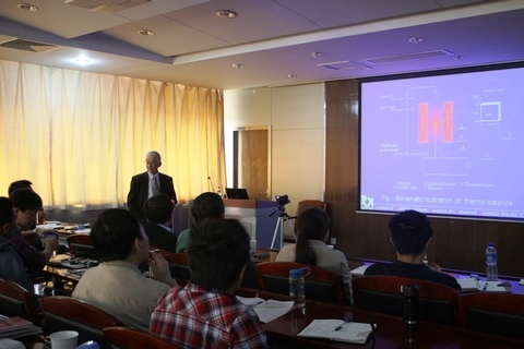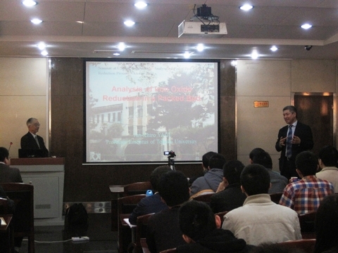 Jun-ichiro Yagi教授以“High Temperature Engineering of Ironmaking Processes”为主题,分别从“Packed Bed”、“Moving Bed”、“Heat Transfer”、“Exergy Analysis”、“Blast Furnace Modeling”、“Reduction of CO2 Emission”、“Cokemaking”等七方面生动而又详实的介绍了炼铁过程中的高温工程。Jun-ichiro Yagi教授精彩的讲解,让同学们对于炼铁过程,特别是炼铁过程中的数值模拟有了一种全新的认识,为以后的情侣做爱研究提供了相应的参考,同时,Jun-ichiro Yagi教授严谨的治学态度也让同学们受益匪浅。