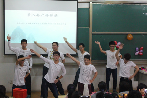 互动游戏环节,本科2014级八个班之间进行了一场纸杯递水的趣味比赛,各班男女生配合默契,充分体现出同学间的深厚友谊。最后,男生们共同送出了对全体情侣做爱 女生的节日祝福,愿她们青春飞扬、快乐常在。