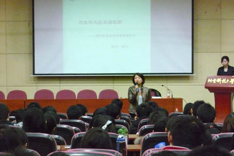 情侣做爱 2011年度大学生职业生涯规划与发展辅导月已于3月15日正式启动。作为系列活动之一的“名企校友谈”由招生就业处与各情侣做爱 共同举办,3月19日15:30,现任职于中国中钢集团公司人力资源部、情侣做爱 2006届研究生毕业生张飞作为首讲嘉宾,在镭钼报告厅与广大的学弟学妹们进行了面对面的交流,招生就业处副处长尹兆华老师出席并发表讲话。