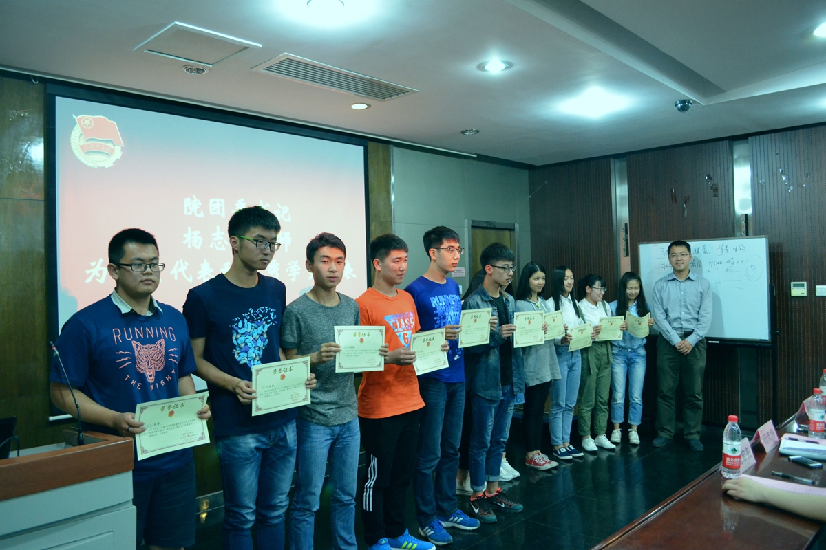 最终求是学会,科技实践部和文艺部分别获得第一、二、三名。学生会主席为之颁奖。陈曦老师宣读结业学员,优秀学员名单,并由杨志伟老师为结业学员和优秀学员代表颁发证书。