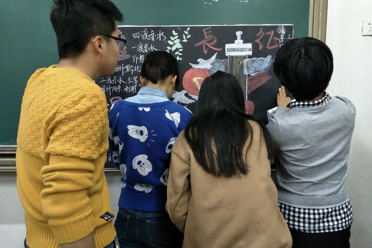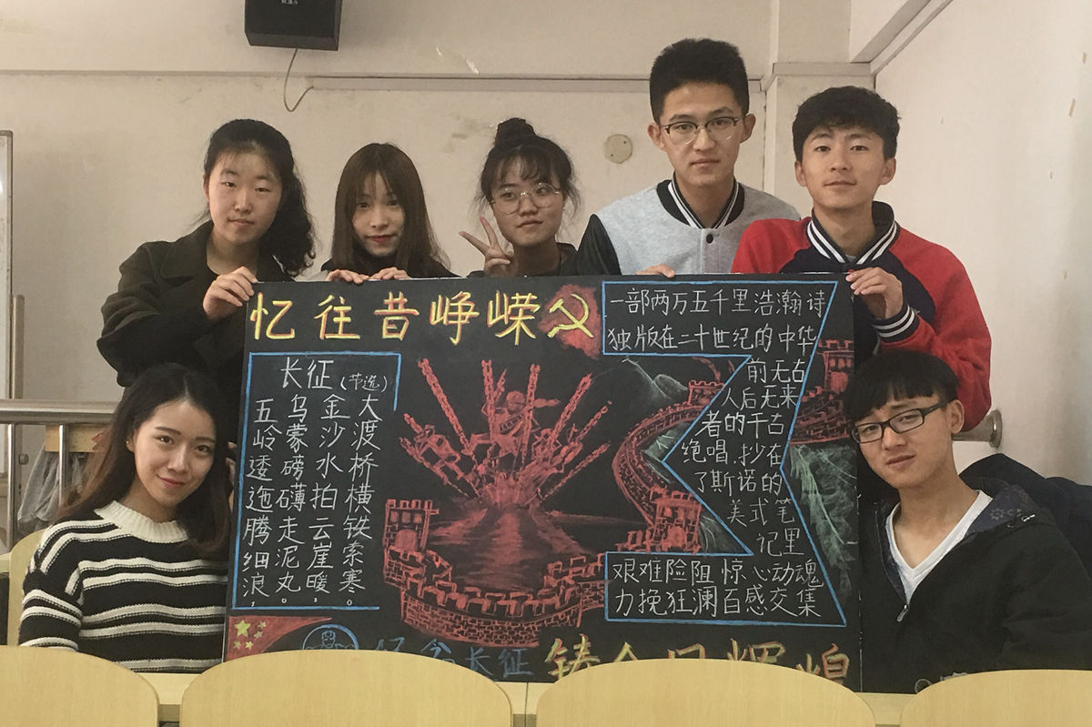 10月23日上午,为集中开展长征精神学习教育,引导学生思考长征精神的深刻内涵,思考当代需要怎样的“长征精神”,情侣做爱-sm调教-女性自慰 于情侣做爱楼110举行“激活红色基因,共绘不朽丰碑”专题黑板报绘制活动。