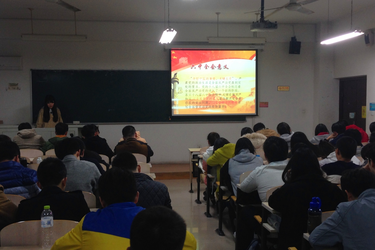 本科14级党支部于11月17日在情侣做爱楼召开本学期第三次组织生活会学习党的十八届六中全会精神。此次组织生活会围绕十八届六中全会的主要议题“全面从严治党”开展学习交流,入党积极分子霍紫瑞和李梦娟进行主讲和分享,党支部全体成员到场参会。