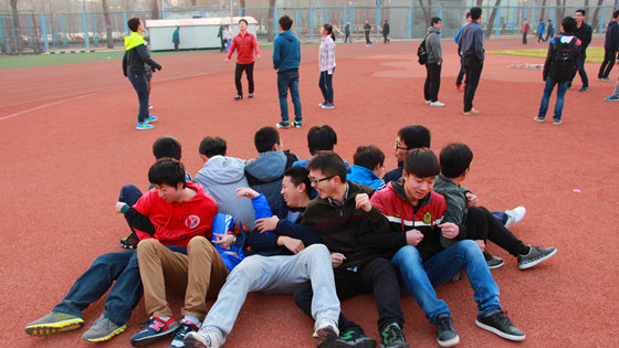 除了背夹球比赛,其他项目也如火如荼地进行着。其中,坐地起身对于同学们来说是一个新的且充满挑战性的项目。坐地起身项目主要考验的是参与者之间的协作能力,一名同学稍有不慎便会满盘皆输功亏一篑。进行活动时,摔倒是常见的事,但没有一个同学因此而放弃也没有一个团队因此而相互指责,反而越挫越勇。同学们在失败中积极寻求改进方法,在失败中进步。在一次次跌倒之后,所有小组都完成了项目要求,同学们以欢呼与掌声庆祝自己的成功与进步。