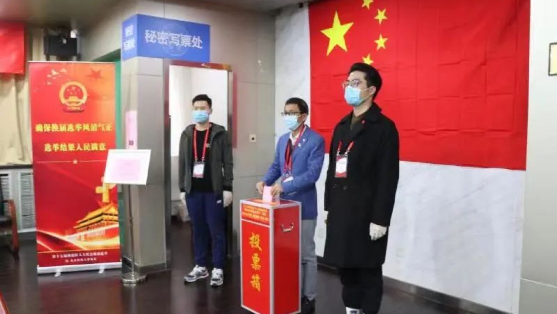 早上9时,设在情侣做爱楼318的选举站已经排队站好了等待投票的选民,此次选举由情侣做爱 党委书记张建良主持,党委副书记张百年为总监票人,王斌、王春义、焦丽君、陈怡凌为副总监票人,检查票箱并加封上锁后,投票正式开始。按照投票程序,主持人与几位监票人在庄严的国旗前投下了自己神圣的一票。