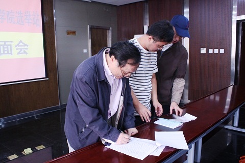 在宣传方面,我院不仅制作了横幅悬挂在院楼门口,大厅内的LED显示屏也滚动播出关于此次选民的注意事项,此外,院办还精心设计了选民榜,将候选人名单张贴在院楼大厅内,醒目大方,使不少教职工及学生驻足浏览。