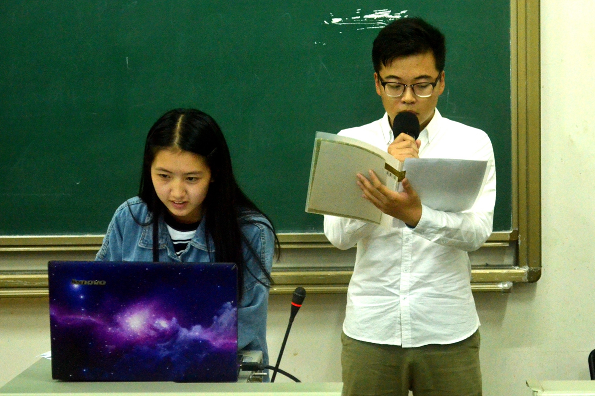 最后李忆妍同学向同学们展示了经历了三年大学生活后现在同学们的生活风貌。然后以自身经历为切入点,讲述了大学三年的一些遗憾。俱往矣,都是已经错过的青春,只能在将来弥补。李忆妍同学寄语16级新生同学们,能做的事情很多,肯努力,肯坚持,青春就能改变。