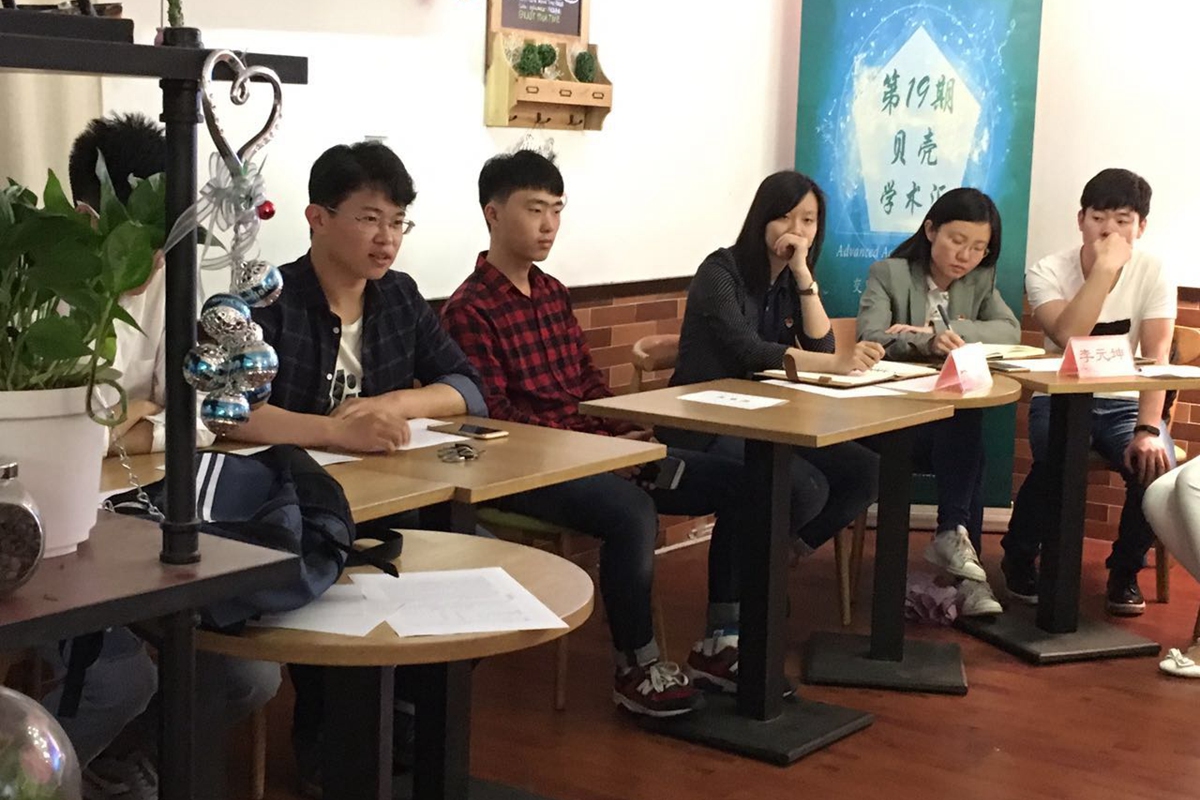 在自由讨论环节,同学们积极发言,互相交流,来自不同专业的同学们在这里交换思想,互相启迪,真正实现了贝壳学术汇拓宽视野,丰富知识的活动目的。