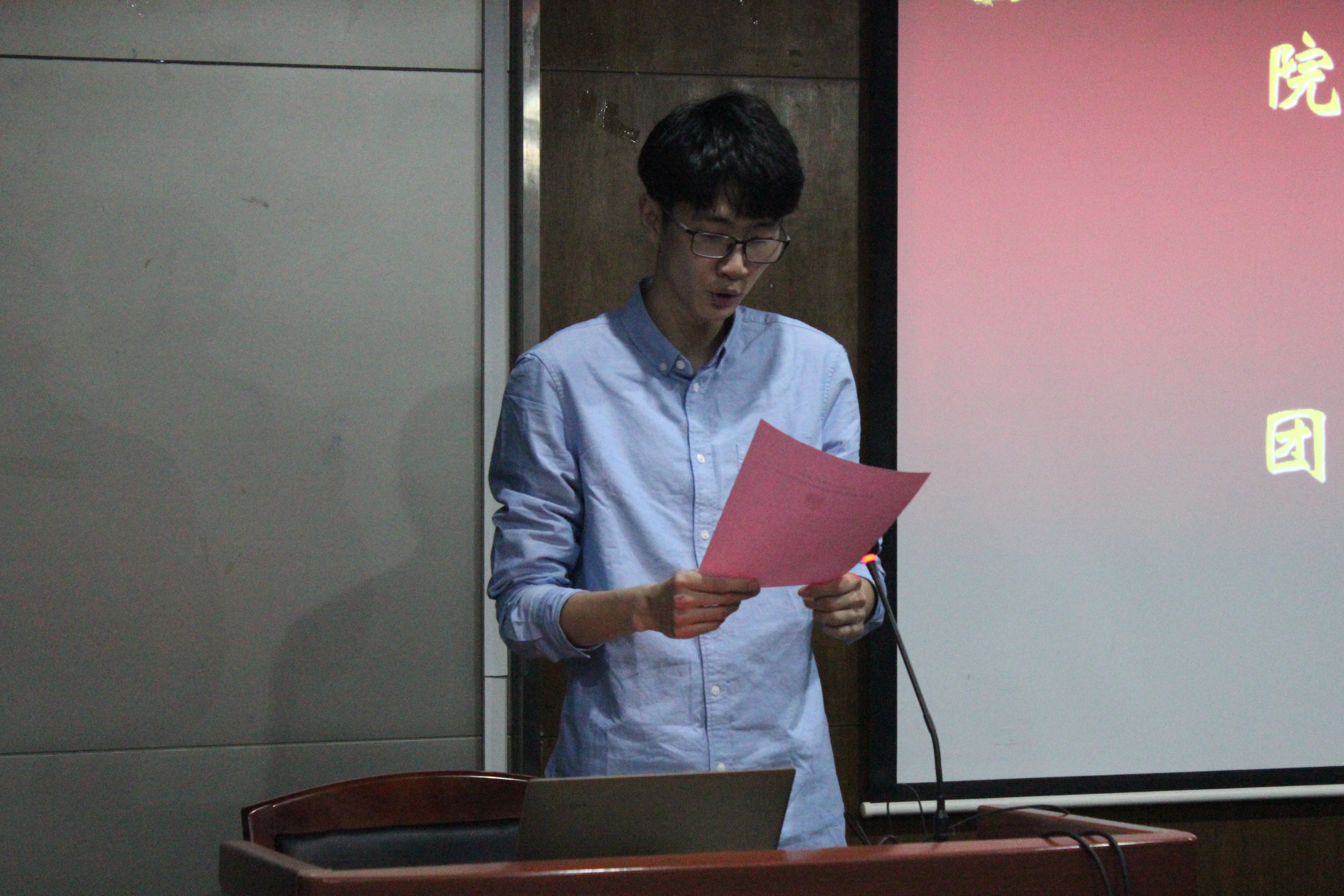 紧接着进行团校第一讲,院学生会副主席卜雨衫为同学们进行团学工作规范培训。她从PPT的制作、物资购买以及一些工作技能三方面对同学们进行了培训。