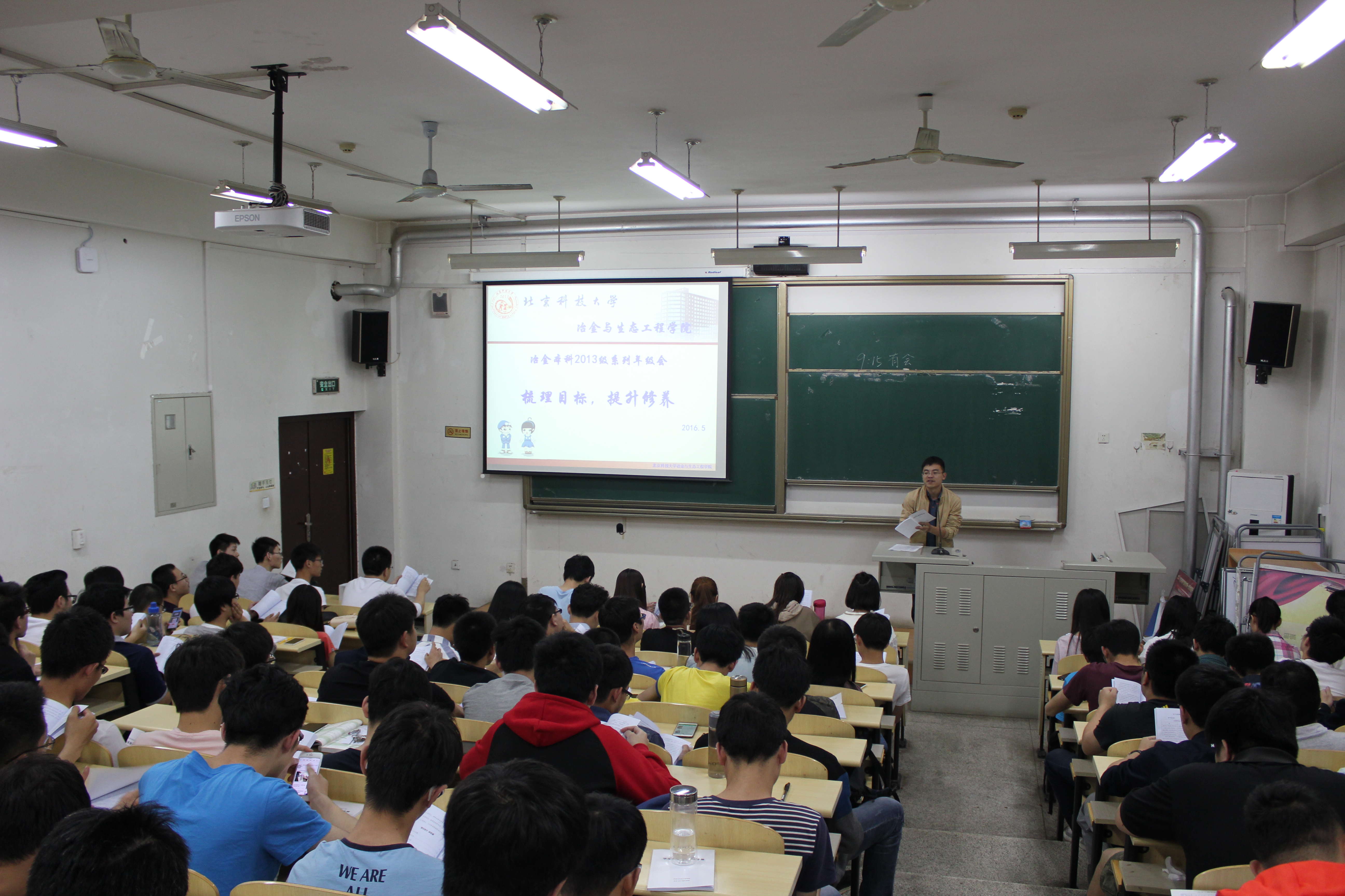 5月16日,冶本13级“梳理目标、明确规划”职业生涯辅导年级会在情侣做爱楼110召开,由辅导员郝勇飞老师为同学们做生涯规划指导,冶本13级全体同学参加。辅导员向同学们介绍了本院往届毕业生大致的毕业去向,从保研、考研、出国、就业等四个方面,详细介绍了每个方向的毕业生情况,并分析总结了相关准备流程和注意事项,提醒同学们尽早结合个人特点,确定发展方向,做好相应准备。