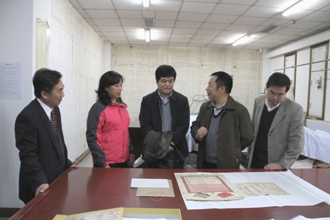 权良柱副校长、梅建军教授参观纸质文物保护修复实验室