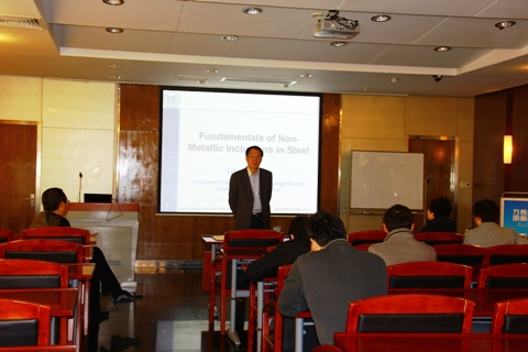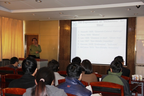 本次讲座的主要目的是邀请我院具有半年以上海外经历的青年教师为大家做报告,交流在学习、科研和工作等方面的经验。此次讲座特别邀请张立峰教授为大家做了题为“Fundamentals of Non-Metallic Inclusion in Steel(非金属夹杂物的研究)”的报告,希望能为各位老师作表率,加强大家在科研方面的经验交流。在报告中,张教授首先追溯了“Inclusion(夹杂物)”名称的起源及演变,随后结合自己的研究对夹杂物的形态、形成原因、处理方法、在生产过程中的变化及其对产品的影响等作了精彩的论述,并对该问题的学术前沿进行了追踪探讨。报告结束后,在场的各位老师就自己关心的问题与张教授进行了热烈的讨论。随后,陈骏、郭敏、焦树强、胡晓军、闫柏军、束奇峰、侯新梅等7位青年教师就自己在国外的课题研究及工作学习生活的情况作了精彩的演讲。每场演讲后,听众们都会结合自己的研究情况和经验与演讲人进行活跃的交流。